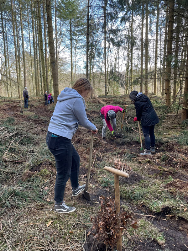 Unter diesem Motto fuhren 16 Jugendliche und vier Mitarbeitende aus dem St. Bonifatius in das Waldstück „Wilschenbruch“ in der Nähe der roten Schleuse. Dort wurden alle willkommen geheißen und eingestimmt. Alle brachten eigene Spaten mit und waren so perfekt ausgerüstet, um die jungen Bäume in die Erde zu setzen. Nach einer kurzen Erklärung und Einweisung fingen die Jugendlichen und Mitarbeitenden an, ihre kleinen Setzlinge in die Erde zu pflanzen. Alle waren sehr motiviert, fröhlich und bei allem Spaß auch sehr präzise. Immer wieder betonten die Jugendlichen, wie gut die Waldluft tut und dass es ein tolles Gefühl sei, etwas für die Umwelt zu tun.