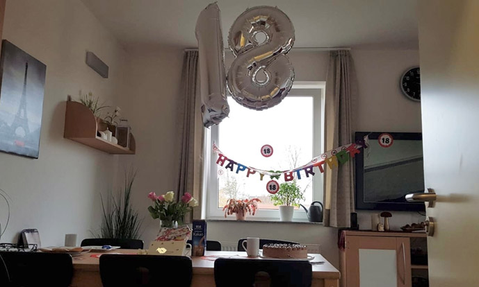 Auch Geburtstage verliefen während der Pandemie völlig anders als gewohnt. Statt mit vielen Leuten, wurde in der Gruppe gefeiert. Statt schick Essen zu gehen haben wir uns etwas liefern lassen. Statt eng auf eng, blieben wir auf Distanz. Und dennoch werden diese Geburtstage als schöne Erinnerungen im Gedächtnis unserer Bewohnenden bleiben, den mit ABSTAND sind es ganz besondere Geburtstage in einer ganz besonderen Zeit.