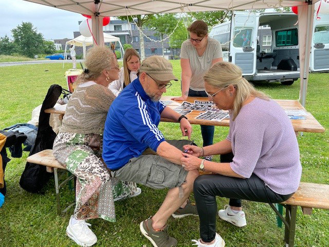 Am Stand vom Sprachheilkindergarten gab es jedoch nicht nur Tattoos und Riesen-Jenga, es gab vor allem ein Wiedersehen. Ein Wiedersehen mit vielen ehemaligen Kindern, Kollegen und Kolleginnen und anderen Weggefährten. Viele schöne Gespräche und fachliche Diskussionen rundeten diesen schönen Tag für die Mitarbeitenden ab. Wir freuen uns schon heute auf das nächste Stadtteilfest, welches bereits am 08.06.24 in einem weiteren benachbarten Stadtteil auf uns wartet. Hier werden wir dann das Thema Fußball EM mit einem mundmotorischen Spiel aufnehmen, wieder Riesen-Jenga spielen und hoffentlich ganz viele ehemalige und neue Kinder treffen. Und selbstverständlich werden wir auch in Kaltenmoor wieder „Willkommen hier auf diesem Fest“ zur Einstimmung für alle singen!