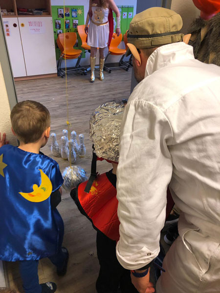 Am Morgen kamen nicht wie gewohnt die Kinder mit den Taxen in den Sprachheilkindergarten, stattdessen betraten kleine Piraten, Feuerwehrmänner, Spiderman, Prinzessinnen, Astronauten, Außerirdische, Eisbeeren, Tierpfleger, Ritter, Hexen und andere lustige Gesellen den Kindergarten. Alle hatten sich verkleidet und fieberten dem Tag entgegen.