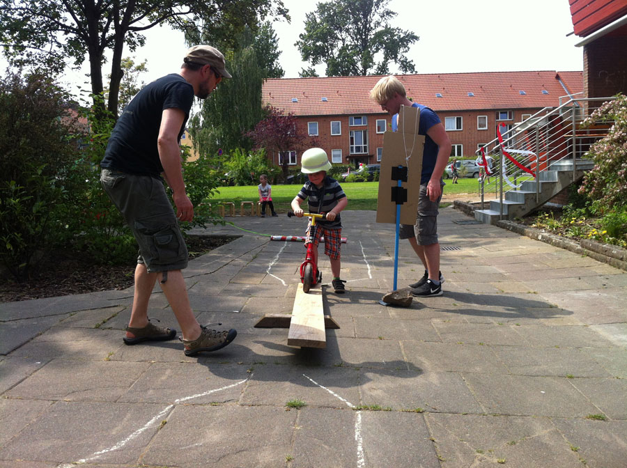 Anschließend erkunden die Kinder gemeinsam mit ihren Eltern, Großeltern, Verwandten und Geschwistern die aufwändig vorbereiteten Angebote. Es können nostalgische Murmelspiele bei der Igelgruppe gespielt werden, bei den Hasen darf mit nackten Füßen nach Murmeln in einer Wasserwanne gefischt werden. Die Mäuse haben einen Parcours zur Verkehrssicherheit vorbereitet und hier können die Kinder sogar ihren eigenen Führerschein erlangen.